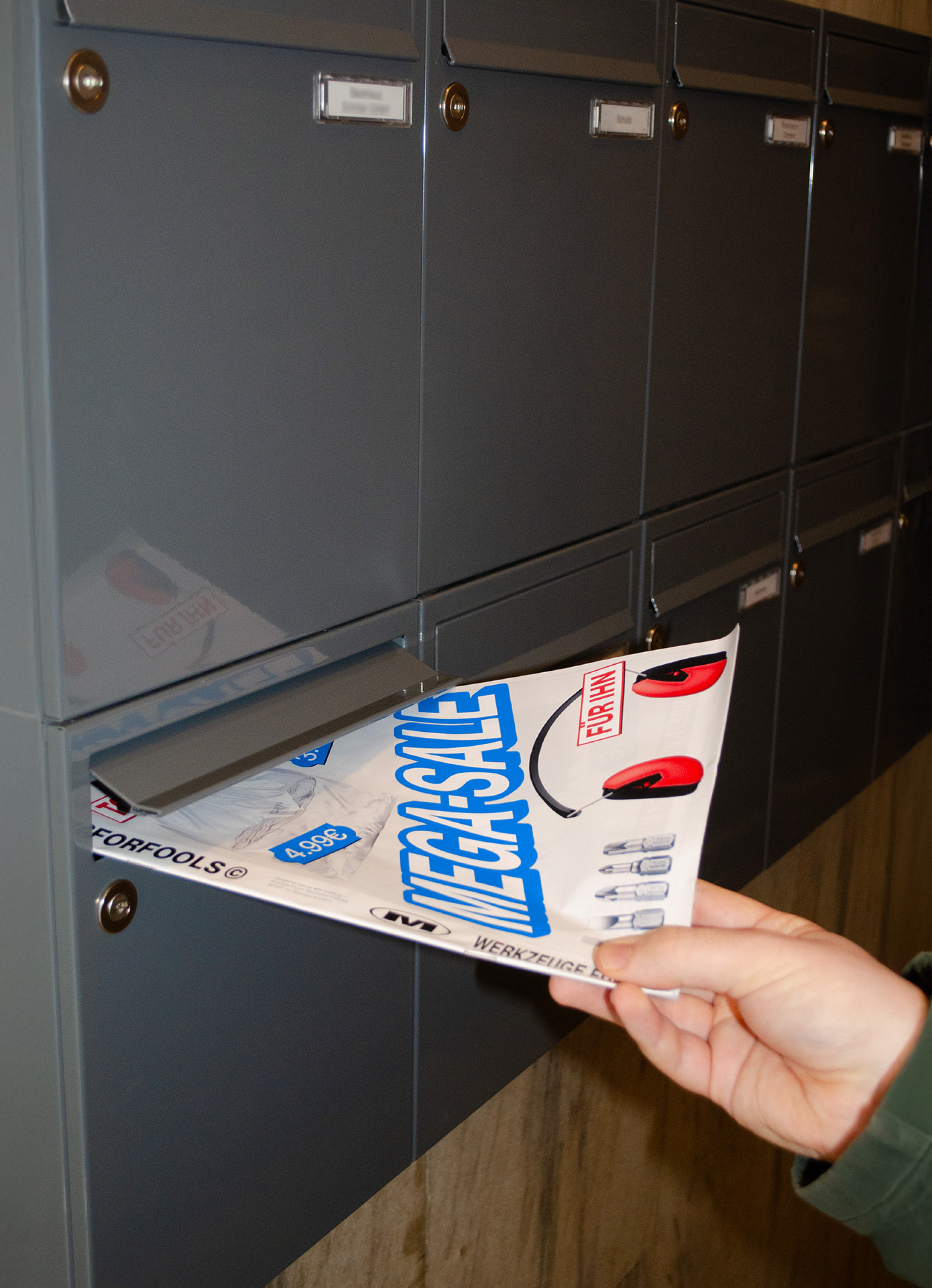 To this end, Louisa Nikolaus disguises her specially developed tool collection TOOLSFORFOOLS as a DIY store leaflet. The flyer can be distributed widely through letterboxes, is inexpensive to produce, and creates an unexpected moment of confrontation in everyday life. Mixing humour with necessary radical clarity, men are invited to reflect on their own behaviour and interrogate the way they have been socialised.